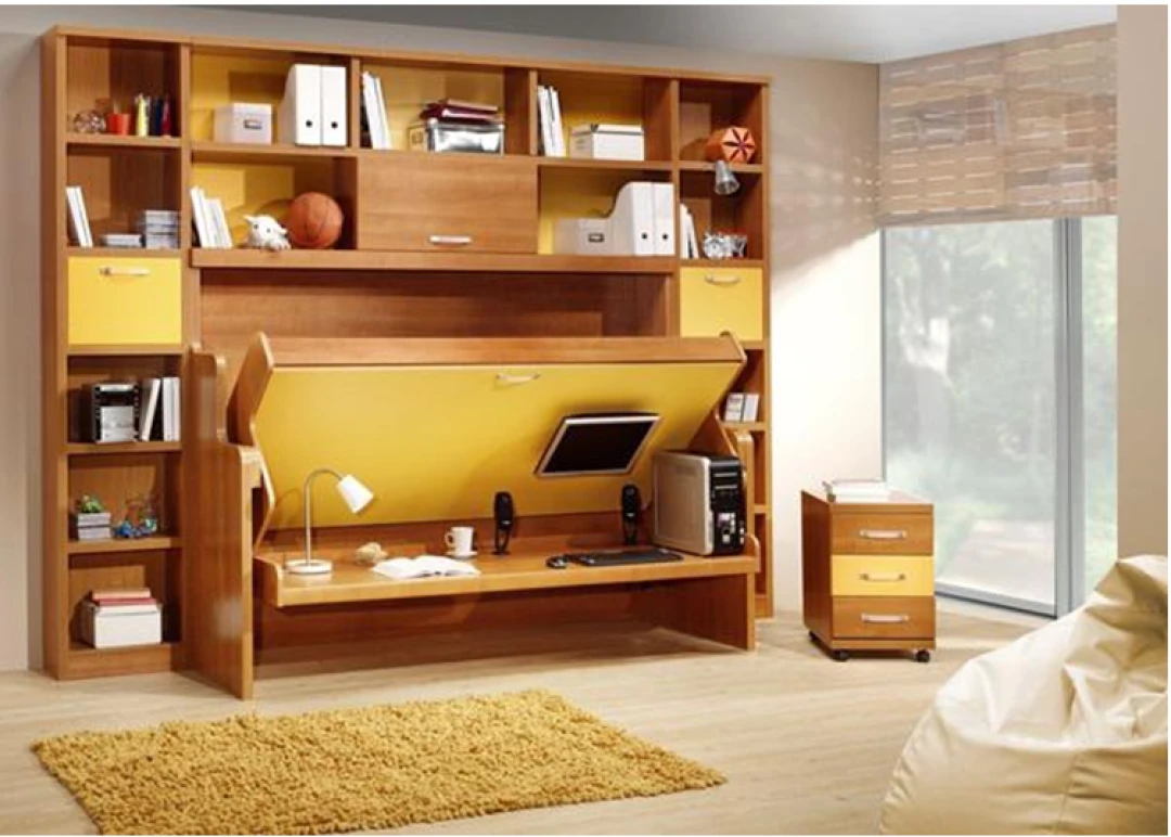 Bàn học, bàn làm việc được kết hợp với giường ngủ giúp tiết kiệm không gian hiệu quả